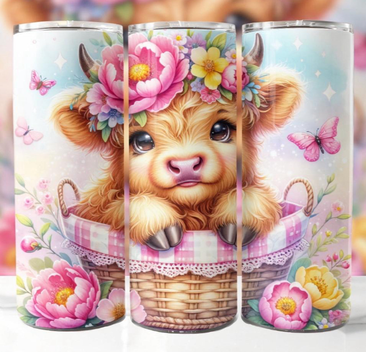 Flower Power Highland Cow Tumbler