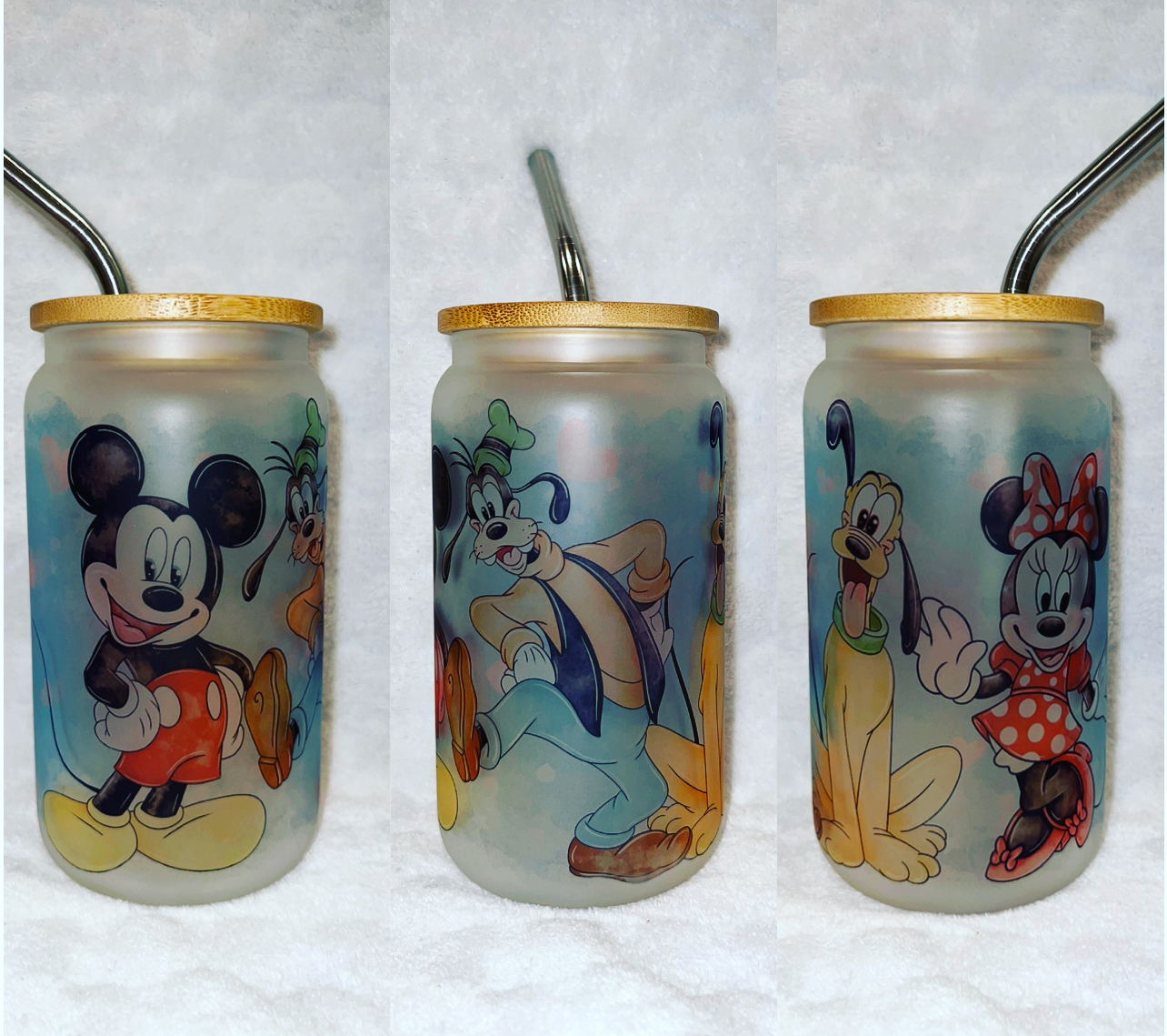 16oz Frosted Glass with Bamboo Lid and metal straw.