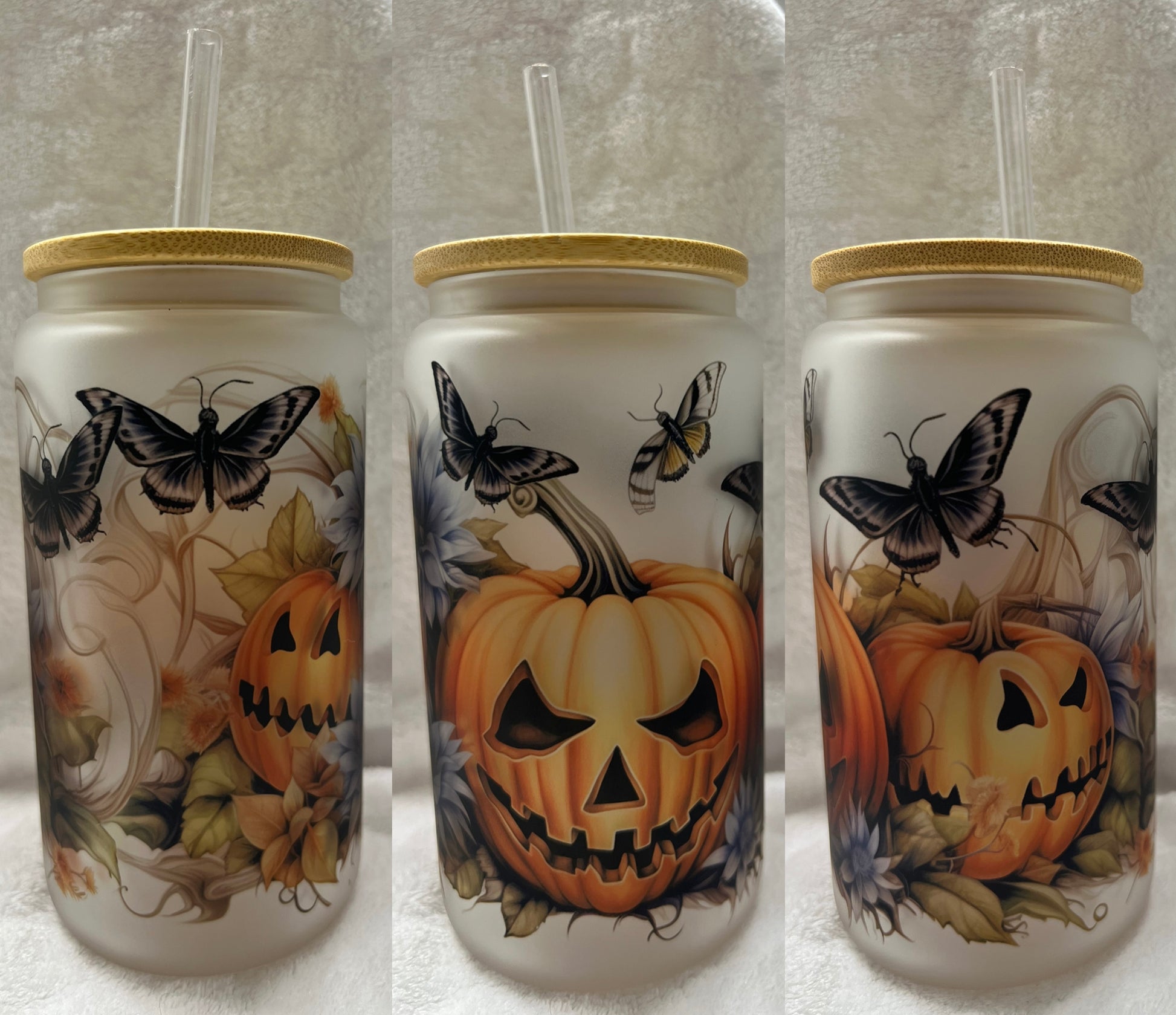 16oz frosted Can Glass with bamboo lid and straw.